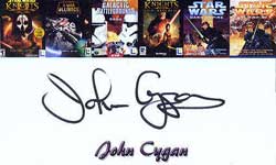 John Cygan signed card; Obtained through exchange and bottom one by mail. Mr. Cygan worked on these Video Games: Star Wars: Shadows of the Empire, Star Wars: X-Wing Alliance, Star Wars: Galactic Battleground and Star Wars Knights of the Old Republic