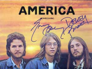 This was a ticket-less event; a free concert in the park for the Independence Day Holiday. It was sponsored by the city of Newport News. I didn't take photos, but below is a America signed item. I can't say enough about their music and songwriting; I love it. I play their Best hits all the time. I am missing a sig; but I guess he doesn't sign.