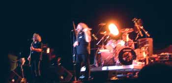 Photos aren't great because we aren't allowed to take photos at all, and not only could we not use a flash, but you aren't allowed to move from your seats. I had a digital camera that didn't have high shutter speed; everything looks blurry at night when even in tiny bit of motion. This is the best I could do. Styx was really great and Kansas sounded pretty good. Mostly, it was their unique instrumentation that is their trademark, that made it a good show. Kansas played first; they were better than last year big time, but they are not as great live as in studio recordings; the lead singer's voice seems to be going out. The band is getting old and out of shape, but they can play great still. The far right photo below we bought at the concert. It's unsigned, but an autographed program we got from them, is below.