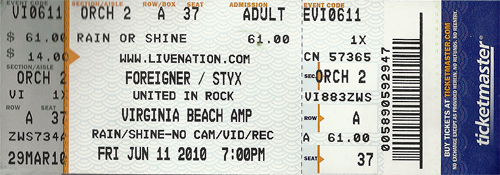 Virginia Beach Amphitheatre, Virginia Beach, VA with guests Styx and Foreigner