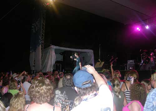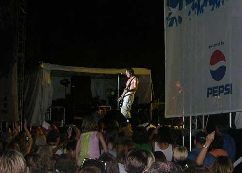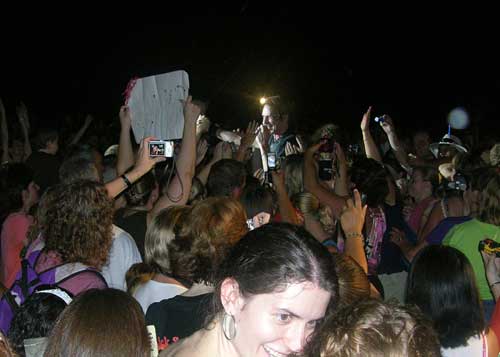 From left to right: 1) The crowd started nice like this 2) then turned to this and when it got dark even WORSE 3) Whole Band 4) Drummer and Guitarist (have no idea who they are) 5) He brought a little girl up on stage 6) Shirtless at the end of the concert (encore).
