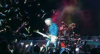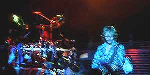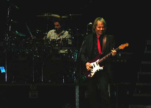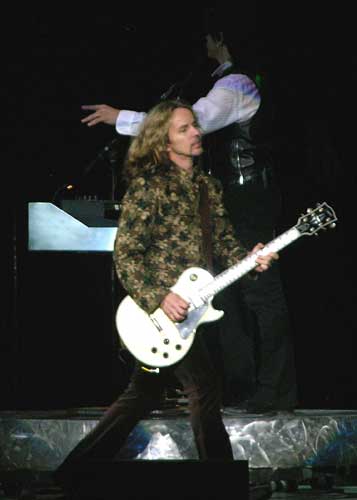Peter Frampton (left) plays with Bass guitarist James Young from Styx, second shot is Ricky Phillips from Styx with one of the Nelson's, third shows Ricky with a beach ball, Center is Ricky Sucherman, the hardworking drummer, fifth photo is a great shot of Tommy Shaw and to the left some of the band, sixth photo is Tommy singing, Finally James young, not sure who else and Tommy Shaw. I don't seem to have a good one of Lawrence Cowan the Keyboard player, but you can see his image above from the 2002 concert. He was at this one, but all I have is some very small wide-shots with him in it. Another GREAT show.