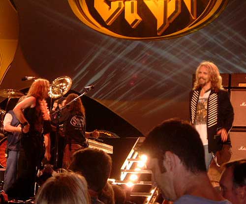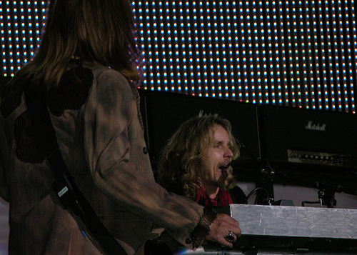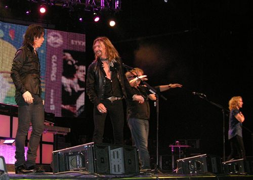 Left to right: 1) Everyone but Todd Sucherman. Chuck Panozzo in forefront 2) Lawrence Gowan and Ricky Phillips 3) Ricky Phillips and Lawrence Gowan 4) Tommy Shaw, Chuck Panozzo and James Young in background 5) Lawrence Gowan and Ricky Phillips