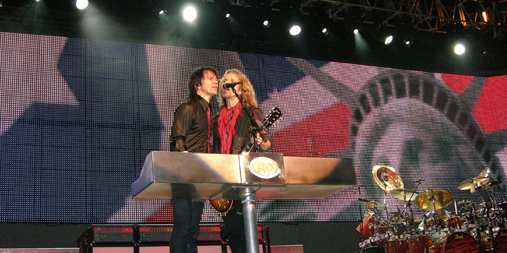 Left to right:1) Back of Ricky Phillips and Tommy Shaw 2) Todd Sucherman (Drums) 3) Ricky Phillips 4) Lawrence Gowan and 5) James Young and Tommy Shaw