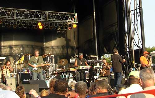 Left to Right: 1) Original member Keyboardist Lonnie Jordan 2) Unknown Harmonica Player 3) Percussion Marco Reyes 4) War the Band 5) Stewart Ziff